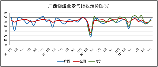 广西物流与采购联合会发布的2021年10月份广西物流业景气指数(LPI)为48.6%,与上月相比下降6.9个百分点。