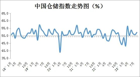 中国物流与采购联合会发布的2023年7月份中国物流业景气指数为50.9%,较上月回落0.8个百分点;中国仓储业指数为52.2%,较上月上升1.5个百分点。