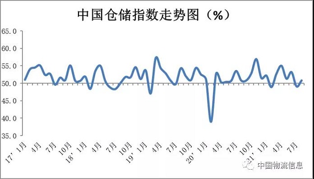 中国物流与采购联合会发布的2021年8月份中国物流业景气指数为49.5%,较上月回落0.8个百分点;中国仓储指数为50.8%,较上月回升1.7个百分点。