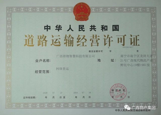 7月27日,广西桂物智慧科技有限公司领到了南宁市邕宁区交通运输局颁发的“网络货运道路运输经营许可证”,抢占“智慧物流”新风口。这是自今年1月1日《网络平台道路货物运输经营管路暂行办法》正式生效以来邕宁区发出的首张“网络货运”运营牌照。