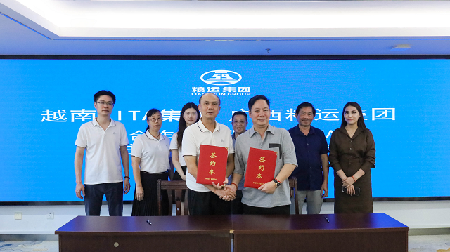 8月8日上午,广西粮运集团与越南KITA集团在粮运集团金海办公区举行战略框架合作协议签署暨越南KITA集团粮运办事处揭牌仪式。粮运集团董事长陆精华与越南KITA集团董事长阮维坚签署战略合作协议,越南驻广西总领事馆副领事长阮友军及双方业务骨干出席并见证这一重要时刻,随后双方就各个业务板块合作细节进行座谈。分内容主要是对工作的主客观条件、有利和不利条件以及工作的环境和基础等进行分析。