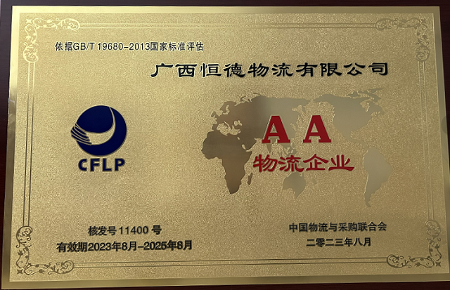 广西恒德物流有限公司获评AA级物流企业