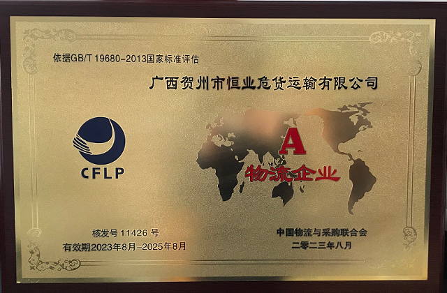 广西贺州市恒业危货运输有限公司获评A级物流企业