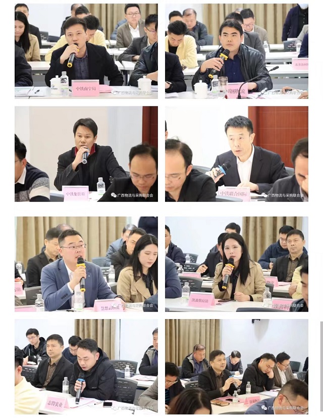 自治区北部湾办二级巡视员覃开宏出席会议并致辞。自治区发展改革委、交通运输厅,南宁、钦州、北海、防城港、玉林、崇左市北部湾办代表,枢纽联盟成员单位广西现代物流集团有限公司、广西北部湾国际港务集团有限公司、广西中远海运集装箱运输有限公司、中铁集装箱运输有限责任公司、中铁联合国际集装箱广西有限公司、上海中谷物流股份有限公司、广西交通投资集团有限公司、中外运广西有限公司的代表,以及中国铁路南宁局集团有限公司、广西柳钢物流有限责任公司、南宁云鸥物流股份有限公司、广西泛航国际物流有限公司、广西志得实业有限公司、广西金桥实业集团有限公司等19家特邀企业代表、专家学者、研究机构等近50人参加研讨会。会议由自治区北部湾办物流发展处处长卢钦、桂物联副会长兼秘书长黄爱琼分别主持。
