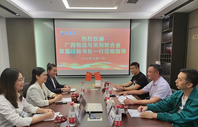10月11日,广西物流与采购联合会副会长兼秘书长黄爱琼一行到广西运多多供应链管理有限责任公司走访调研,与运多多董事长、广西国际商会跨境贸易委员会会长王正波及企业相关负责人进行座谈,双方就资源对接共享、深化合作等方面进行交流。