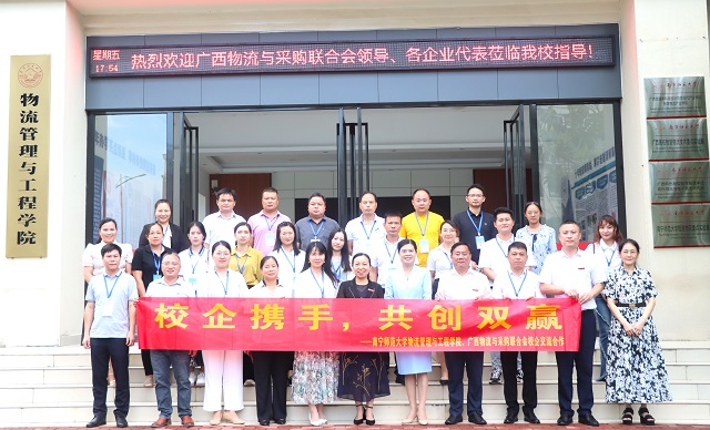 南宁师范大学物流管理与工程学院党委副书记黄宇,副院长刘新全、黎英、蔡宏果及专任教师代表,广西供应链服务集团南宁物资储运、南宁云鸥物流、广西玉柴物流集团、广西顺丰速运、广西九州通医药、广西泛航国际物流、广西粮运集团、广西扶南物流、钦州祥龙物流、广西超大运输集团、广西汇佳国际物流、广西慧想云物流、广西和顺水运集团、广西联盟物流、广西联盟叉车、广西货车邦科技等16家物流企业负责人、人资部门负责人参加。
