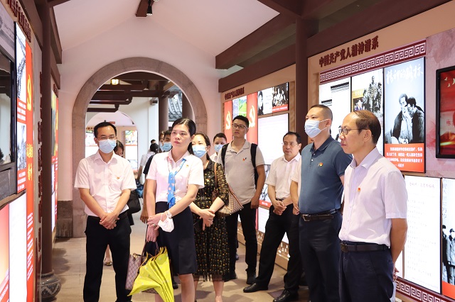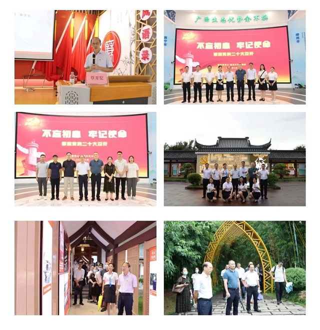 在讲解员的带领下,自治区北部湾办二级巡视员覃开宏,自治区北部湾办物流发展处处长卢钦,桂物联副会长兼秘书长、支部书记黄爱琼,广西桂物智慧科技有限公司党支部书记、总经理、董事汪林波等20位党员先后参观了中国共产党人精神谱系主题园与竹园廉洁文化主题园。