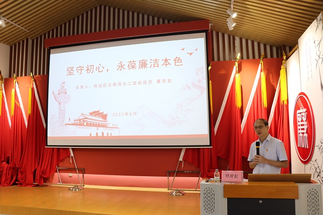 参观学习结束后,覃开宏以“坚守初心,永葆廉洁本色”为主题,就中共一大会议概况、13位一大代表的人生经历和启示等内容为党员干部讲授了一堂形象生动、深入浅出的廉洁教育党课,带领大家一同回顾中国共产党从诞生到发展的艰辛历程。并强调党员干部要以史为鉴,不忘初心,牢记使命,将廉洁自律的各项措施落实到具体工作中,用实际行动永葆清正廉洁的本色。