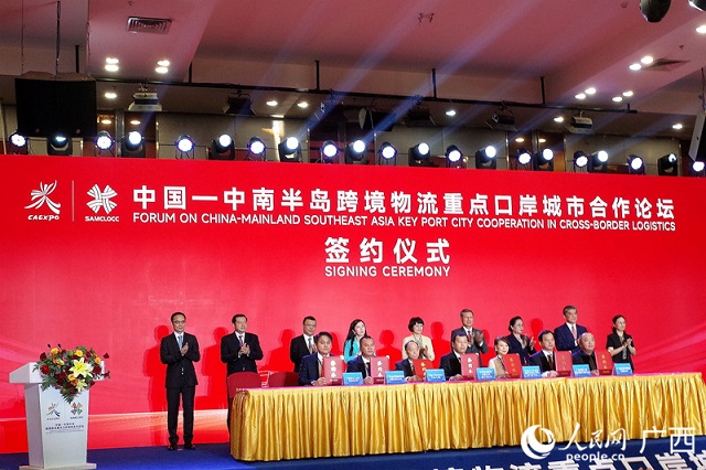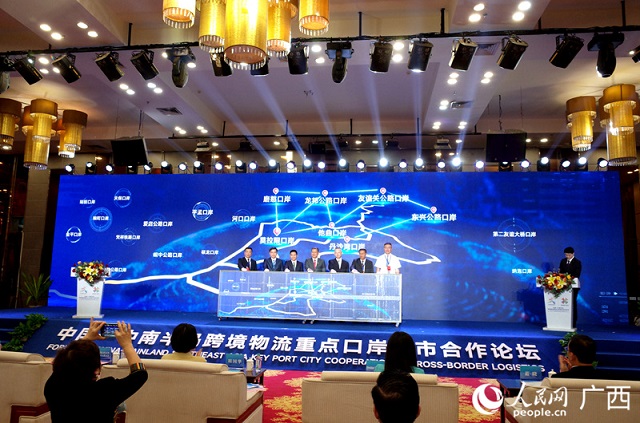 论坛现场发起中国—中南半岛跨境物流口岸智慧互联合作倡议。人民网 覃心摄