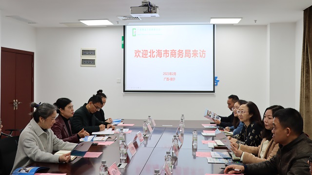 2月6日,北海市商务局副局长戴量人率队到访广西物流与采购联合会,与广西物流与采购联合会副会长兼秘书长黄爱琼就北海市商贸物流产业招商进行座谈交流。北海市银海区人民政府副区长曾碧春,广西物流与采购联合会副秘书长郭军、邓晓滨一同参加座谈会。