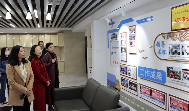黄爱琼首先对戴量人一行表示欢迎,并陪同参观了广西现代物流集团规划馆和桂物联成果展示区,对近年来桂物联运行情况及服务行业发展的举措进行了介绍。黄爱琼表示,协会在资源对接方面发挥着桥梁和纽带作用,希望下一步加强与北海市政府的互动和沟通,为北海市物流产业招商提供服务。