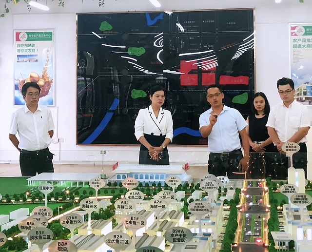 6月10日下午,广西物流与采购联合会副会长兼秘书长黄爱琼、副秘书长邓晓滨一行到南宁陆港型国家物流枢纽项目南宁农产品交易中心调研走访,与交易中心副总经理蓝蔚进行座谈,部门主要负责人参加了会议。