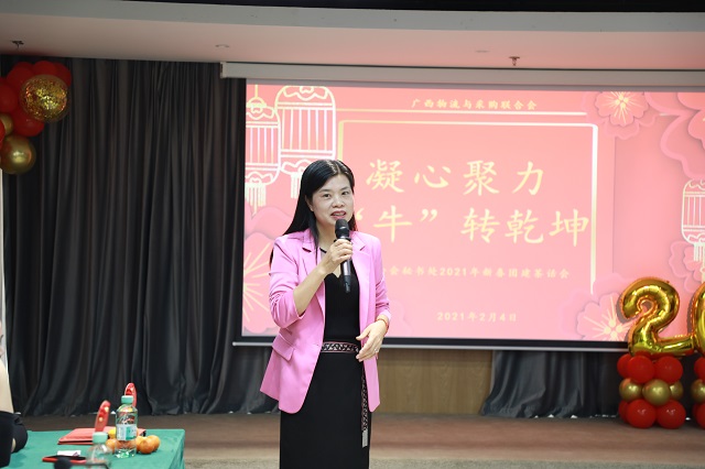 欢声笑语辞旧岁,豪情满怀迎新年。2月4日下午,广西物流与采购联合秘书处在广西现代物流孵化中心学习沙龙开展“凝心聚力 ‘牛’转乾坤”主题新春团建活动,全体员工欢聚一堂,道心声、话发展,共同展望美好未来。由联合会副秘书长张华主持活动。