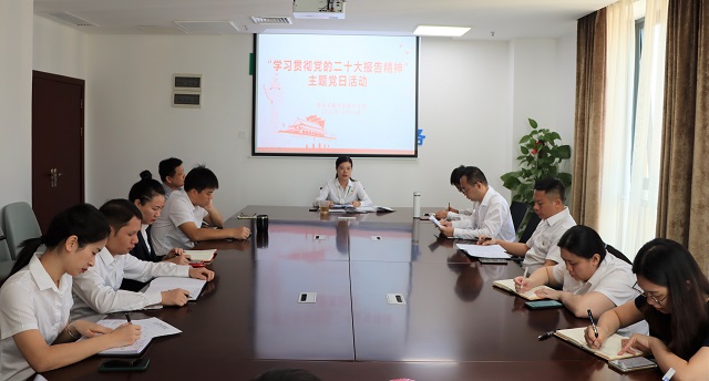 黄爱琼带领大家对党的二十大报告和习近平总书记在参加党的二十大广西代表团讨论时的重要讲话精神进行学习,特别学习与物流业发展有关的一系列新论断、新思想、新战略。
