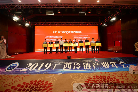 为表彰先进,树立行业标准。今年广西冷链协会评选出“2019广西冷链优秀企业”10个,“2019广西冷链年度人物”7名,“2019广西冷链特别贡献单位”“2019广西冷链服务优秀企业”各1个,聘任了18名冷链专家进入广西冷链专家智库,并为获奖企业、嘉宾、专家颁发牌匾、证书,同时为2019年广西冷链协会新入会成员颁发牌匾。