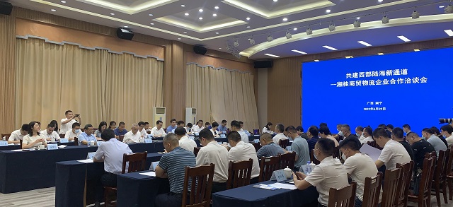 6月29日,由广西贸促会举办的“共建西部陆海新通道——湘桂商贸物流企业合作洽谈会”在南宁召开,广西物流与采购联合会组织区内7家物流企业参加会议。会议旨在促进湘桂双方发挥区位、资源等方面的互补优势,共同推动商贸、物流、产业融合发展,促进更多货物商品从新通道出海,实现合作共赢。