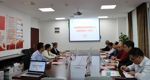 11月23日,陕西省物流与采购联合会副会长兼秘书长温格林带队,携陕西省物流企业代表一行来访协会,与广西物流与采购联合会进行深度交流座谈,联合会副会长兼秘书长黄爱琼、副秘书长邓晓滨、陈湘参加座谈。