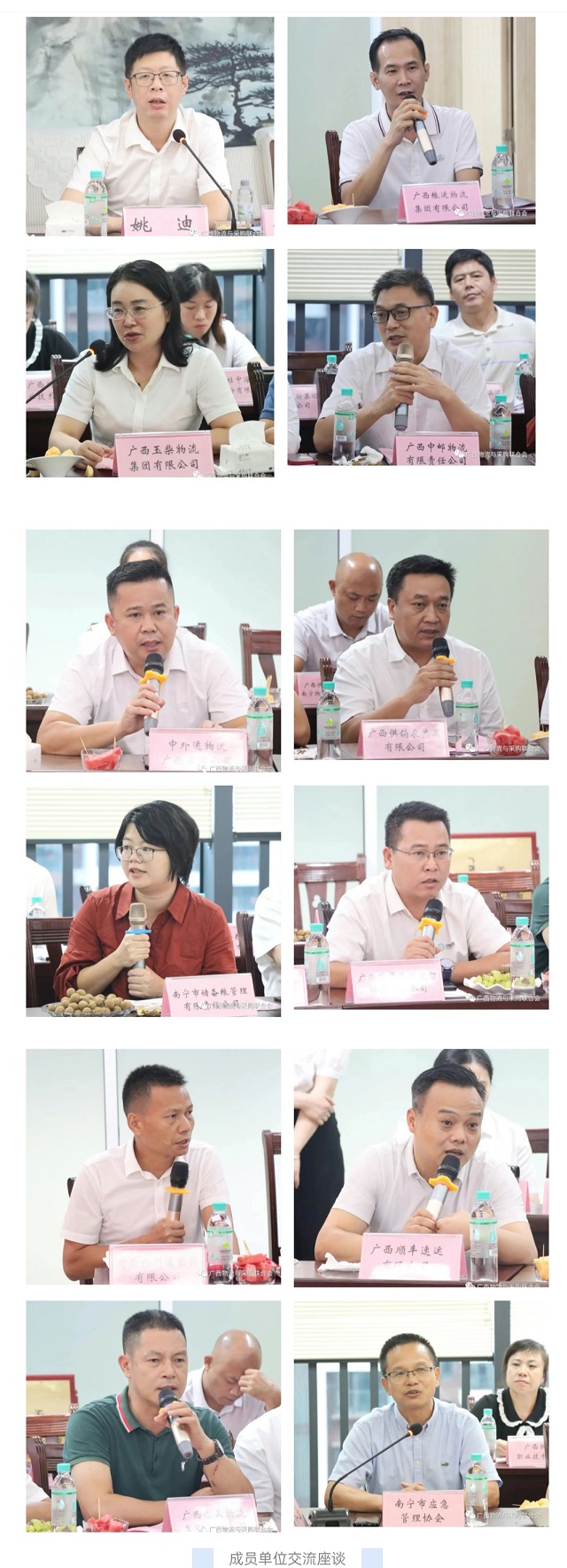 交流互动环节,广西供应链服务集团、广西粮运物流集团、广西玉柴物流集团、广西中邮物流有限责任公司中外运物流广西有限公司、广西供销农产品有限公司、南宁市储备粮管理有限责任公司、广西华晨冷链数智物流有限公司、广西九州通医药有限公司、广西顺丰速运有限公司、广西南天物流集团有限公司、南宁市应急管理协会等单位代表积极发言,围绕应急物流专业委员会的发展建设进行研讨,提出意见和建议,纷纷表示对应急物流专业委员会未来的发展充满信心,将加强互动交流,实现资源共享,形成应急物流响应合力,体现社会担当。