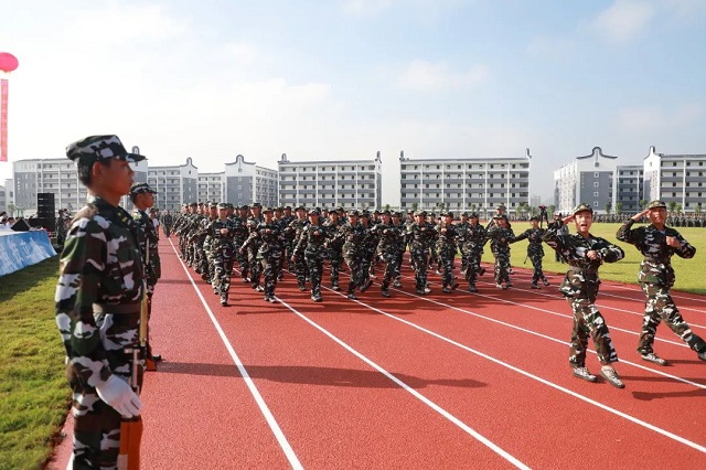 仪式在嘹亮的国歌声和冉冉升起的国旗中拉开帷幕。何录春宣布“广西物流职业技术学院2021级新生开学典礼暨军训检阅仪式正式开始”。21个新生方阵迈着铿锵有力的步伐,以标准军礼向主席台致敬,依次通过主席台,展现新时代大学生朝气蓬勃、意气风发的精神风貌。
