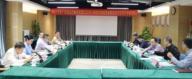 4月22日下午,由广西物流与采购联合会牵头组织的2021年度广西物流行业评选暨2022年广西现代物流专家委员会专家增补评审会议在南宁顺利召开,自治区发展和改革委员会、工业和信息化厅、交通运输厅、农业农村厅、商务厅、自治区北部湾办的有关业务处室负责人、行业协会专家等组成专家评审组,自治区发展改革委经贸处处长薛贻德担任专家组组长,评审会由广西物流与采购联合会副会长兼秘书长黄爱琼主持。