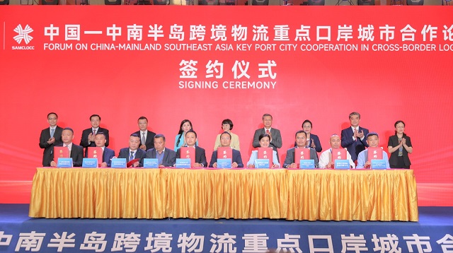 广西物流与采购联合会(前排右四)与河内物流协会(前排右三)签署了战略合作协议。