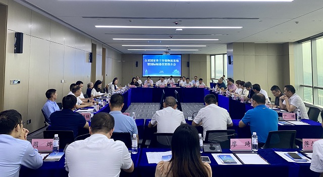 自贡市商务局、财政局、富顺广西商会、自贡市港融建设发展有限公司、自贡创发建设有限责任公司相关负责人以及广西现代物流集团、广西北部湾国际港务集团、广西融桂物流集团、中外运广西有限公司、南宁农产品交易中心等近40家企业代表参加会议。