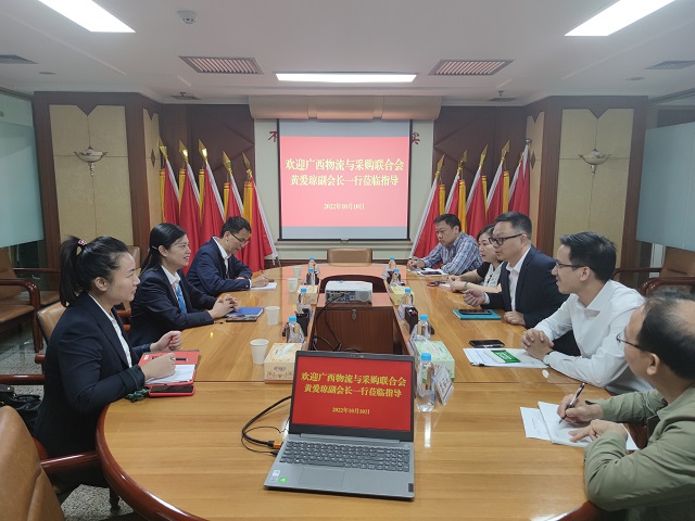 10月10日,广西物流与采购联合会副会长兼秘书长黄爱琼、副秘书长郭军一行到广西五金矿产进出口集团走访调研。与广西五金矿产进出口集团副总经理冉朝靖及企业相关负责人进行工作座谈,双方就资源对接共享、A级物流企业评估等事项进行商洽。