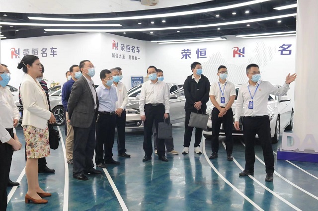 自治区党委组织部组织五处副处长、二级调研员杨济源、自治区国资委党建工作处(党委组织部)处长(部长)白旭宏,自治区交通运输厅综合运输处处长、广西物流快递行业党委副书记陆正业一行考察了广西现代物流集团旗下的五象汽车生活广场,参观二手车销售、车管服务、车检认证中心、党员活动室、党建与业务融合品牌等区域,了解企业发展、党建与生产经营融合等情况。