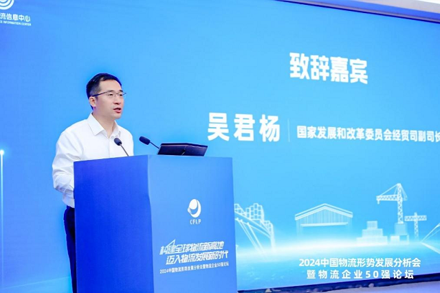 吴君杨在致辞中介绍当前的物流发展形势,党中央、国务院的重要指示、批示精神,近年来降成本取得的成效及下一步政策层面的具体措施。他表示,现代物流恢复性增长、促进实体经济回升向好,从行业规模看,2023年全社会物流总额超过350万亿元,同比增长5.2%,去年全年完成货运量550亿吨,约为美国的2倍,行业规模稳中有进。从基础设施看,国家物流枢纽、国家骨干冷链物流基地、规模以上物流园区等大型物流基础设施有序推进。从服务领域看,专业物流水平不断提高,快递物流量连续十年居世界首位,国际物流规模也持续扩张。从效益看,物流绩效水平明显提升,物流基础设施、国际物流服务能力的排名均位于全球前10%。从市场主体看,企业发展活力持续增强,物流企业规模稳步增长,转型升级趋势明显、新业态不断发展、与产业深度融合,形成创新发展的良好态势。从物流效率看,2024年上半年社会物流总费用与GDP的比例为14.2%,较去年同期下降0.3%,物流降成本取得良好成效。吴君杨指出,提高全社会物流资源的配置效率和物流活动组织化程度,系统性全链条地降低全社会物流成本,一是要优化物流运输结构,深化交通运输体系改革,形成统一高效、竞争有序的物流大市场。二是要优化主干线、大通道,打通堵点、卡点,发展多式联运,提高物流的整体的运行效率。三是要大力发展现代供应链体系,推动数字化发展和绿色化转型,发展物流新模式,加强物流标准体系的建设。四要统筹规划建设国家物流枢纽,整合提升物流枢纽的设施功能,探索产业集群+物流枢纽的协同发展的新模式。吴君杨还表示,物流统计监测数据要在提高行业治理、促进行业发展、提供行业决策中继续发挥重要作用,并对中国物流信息中心以及广大物流统计工作者的辛勤付出表示肯定。
