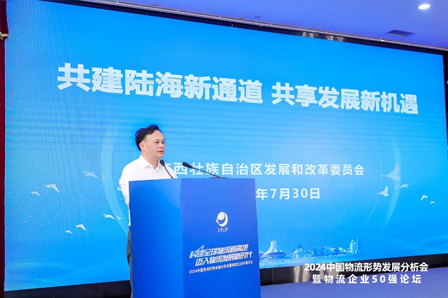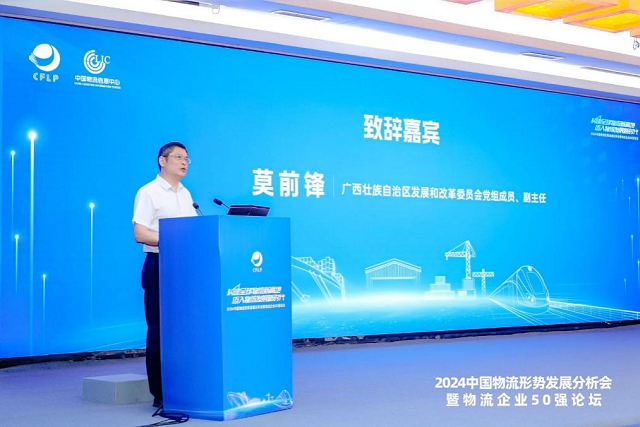由中国物流与采购联合会、广西壮族自治区发展改革委、广西壮族自治区商务厅、南宁市人民政府主办,中国物流信息中心、广西现代物流集团有限公司、广西物流与采购联合会、中国物流与采购联合会智慧物流分会承办的中国物流形势发展分析会暨物流企业50强论坛于7月29日—31日在南宁成功举办。中国物流与采购联合会副会长、国际采购与供应管理联盟全球副主席蔡进,国家发展改革委经济贸易司副司长、一级巡视员吴君杨,国家统计局服务业司二级巡视员王军,广西壮族自治区发展改革委党组成员、副主任莫前锋,广西壮族自治区国资委党委委员、副主任唐爱斌,广西壮族自治区商务厅二级巡视员曹柯笛,广西南宁市委常委、副市长张小强,广西现代物流集团党委书记、董事长覃黎魁和党委副书记、副董事长、总经理杨亦龙,副总经理潘雪红、王辉,广西物流与采购联合会会长、广西现代物流集团副总经理罗圆,中国物流信息中心党委书记、主任刘宇航,副主任陈中涛出席会议。会议由中国物流与采购联合会总经济师何辉主持。中国物流50强企业、民营物流50强企业、广西物流企业代表,各省(区、市)物流牵头部门、行业协会、物流统计先进工作者代表等600余人共同参与本次会议。
