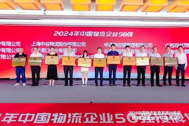 大会举行了2024年度中国物流企业50强、中国民营物流企业50强颁牌表彰活动。其中,我会会长单位广西现代物流集团位列榜单第39位,比上年提升10个位次。