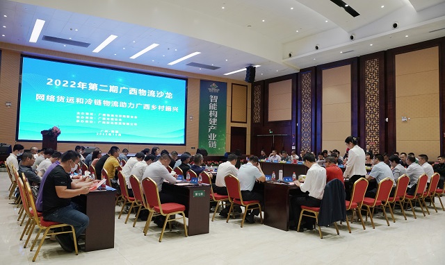 10月29日,由广西物流与采购联合会主办、广西冷链协会协办、广西影迅物流有限公司承办的"2022年第二期广西物流沙龙——网络货运和冷链物流助力乡村振兴"在贵港成功举办。自治区交通厅综合运输管理处四级调研员李铭辉、贵港市港北区副区长林少华、贵港市交通运输局副局长骆泽昌、广西物流与采购联合会副会长兼秘书长黄爱琼、广西扬翔股份有限公司副总裁高远飞、广西影迅物流有限公司总经理钱涛出席沙龙。