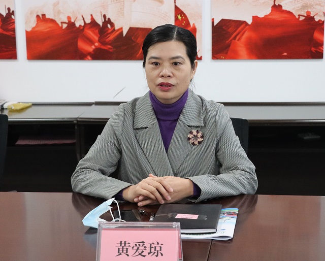 黄爱琼对自治区北部湾办对桂物联一直以来的关心和大力支持表示感谢,并汇报了桂物联基本情况以及近年来在党建、社会物流统计、国家A级物流企业评估、课题调研等方面取得的成绩。她表示,下一步协会将更好发挥政府和企业间的桥梁和纽带作用,与自治区北部湾办加强沟通交流,积极参与钦州—北海—防城港港口型国家物流枢纽共建共治联盟建设,服务自治区北湾办的物流工作,为广西物流业高质量发展做贡献。