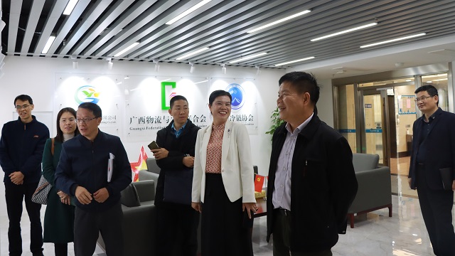 黄爱琼对调研组一行表示欢迎,并汇报了桂物联基本情况以及近年来在党建、社会物流统计、国家A级物流企业评估、参与政府广西物流业发展“十四五”规划编制、课题调研等方面取得的成绩,提出协会存在的困难、请求事项及下一步发展方向。她表示,下一步将继续加强协会规范化管理,提升协会服务水平,借鉴兄弟省份协会经验做法,更好发挥政府和企业间的桥梁和纽带作用,为广西物流业高质量发展做贡献。