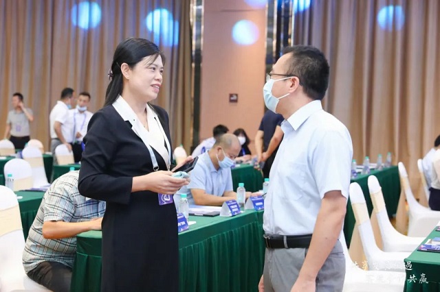 广西物流与采购联合会副会长兼秘书长黄爱琼与参会嘉宾亲切交流