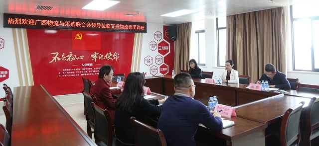 3月3日上午,广西物流与采购联合会副会长兼秘书长黄爱琼、副秘书长韩阳一行到广西物流与采购联合会副会长单位广西交投物流集团有限公司进行走访调研,与交投物流覃彤副总经理及相关部门负责人等进行座谈。