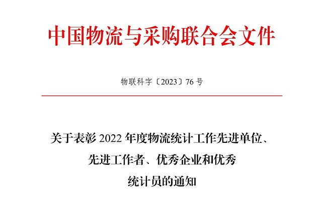 关于表彰2022年度物流统计工作先进单位、先进工作者、优秀企业和优秀统计员的通知