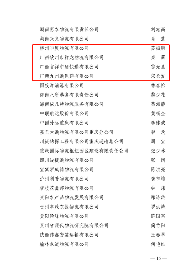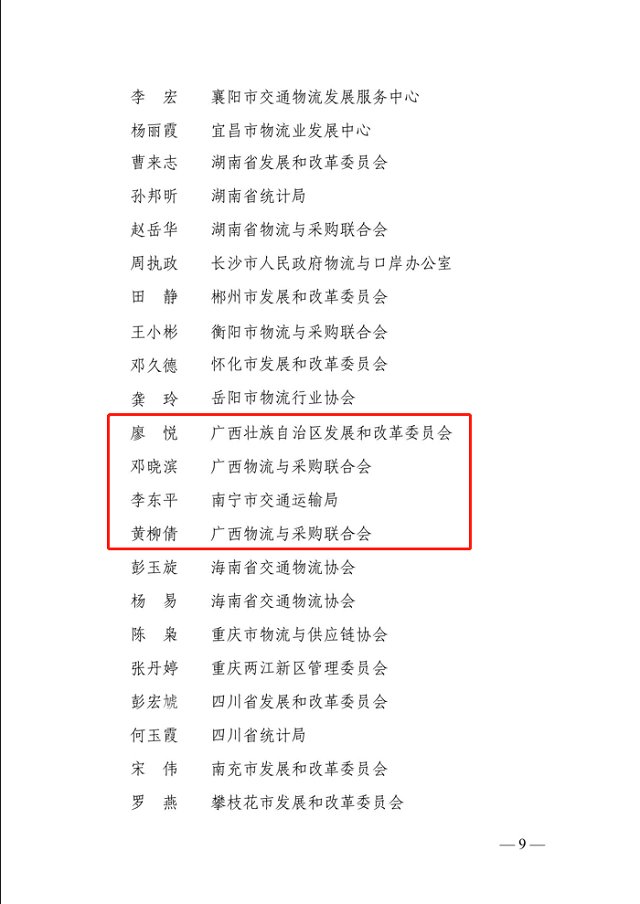 近日,中国物流与采购联合会发布《关于表彰2022年度物流统计工作先进单位、先进工作者、优秀企业和优秀统计员的通知》,自治区发展改革委、统计局和广西物流与采购联合会获评为“2022年度物流统计工作先进单位”,柳州华厦物流、钦州市祥龙物流、广西吉祥中通快递、广西九州通医药共4家企业及4名统计员获评“2022年度物流统计工作优秀企业”和“2022年度物流统计工作优秀统计员”。桂物联邓晓滨、黄柳倩同志获评为“2022年度物流统计工作先进工作者”。