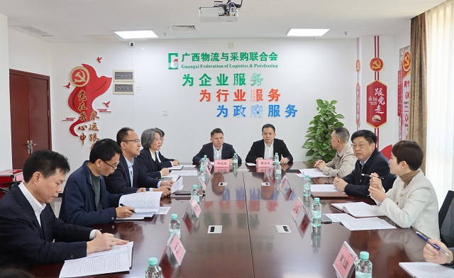 12月18日,广西现代物流集团党委副书记、副董事长、总经理冯小金带队到广西物流与采购联合会、广西冷链协会、广西桂物投资咨询有限公司调研,指导协会和桂物咨询聚焦提升专业能力和服务质量,进一步扩大行业影响力。广西物流与采购联合会会长,广西现代物流集团党委委员、副总经理罗圆陪同调研。