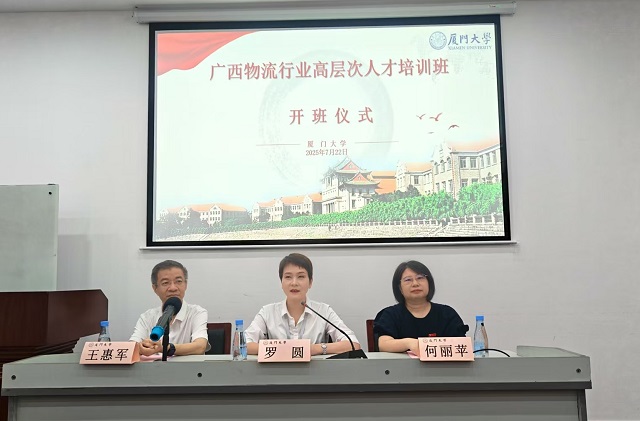 开班仪式上,罗圆介绍了广西物流行业社会物流运行情况和本次培训班举办的重要意义。她表示,本次培训依托厦门大学深厚的学术底蕴和厦门本地标杆物流企业的丰富实践资源,让大家在最富创新活力的热土上,近距离学习国家战略落地的厦门样本,深刻领悟降本增效的先进理念与实践路径,系统掌握智慧化、绿色化转型的前沿知识与核心能力,为广西物流业高质量发展注入新的动能。希望各学员严格遵守中央八项规定精神,遵守培训纪律要求,专注投入学习,借助此次培训加强交流,实现教学相长、学有所成。