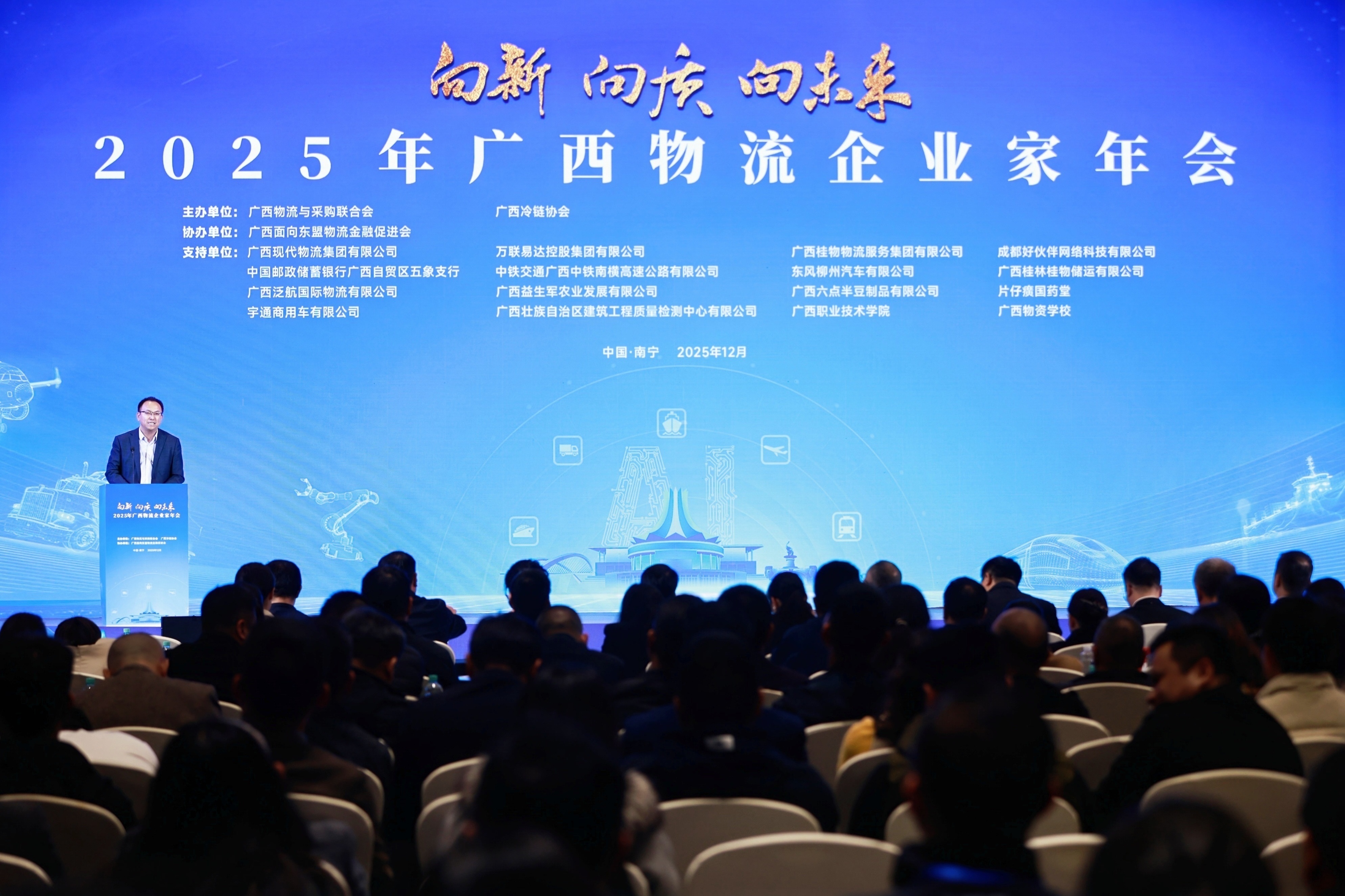 12月29日,由广西物流与采购联合会、广西冷链协会主办,广西面向东盟物流金融促进会协办的“2025年广西物流企业家年会”在南宁成功举办。大会以“向新 向质 向未来”为主题,重点围绕AI物流场景建设、国家物流枢纽网络协同、产业链供应链韧性提升、面向东盟的跨境物流体系创新等热点、焦点,开展前瞻、务实的政企学研对话,总结企业先进模式、典型案例,探索广西物流行业服务广西经济社会高质量发展的路径和举措。大会现场