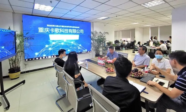 考察组一行先后来到重庆国际物流枢纽展示区、陆海新通道运营有限公司和重庆卡歌科技有限公司,详细了解通道建设和系统建设情况,与陆海新通道运营有限公司、重庆卡歌科技有限公司、广州杰赛科技股份有限公司重庆分公司,就西部陆海新通道信息展示平台进行了研究。